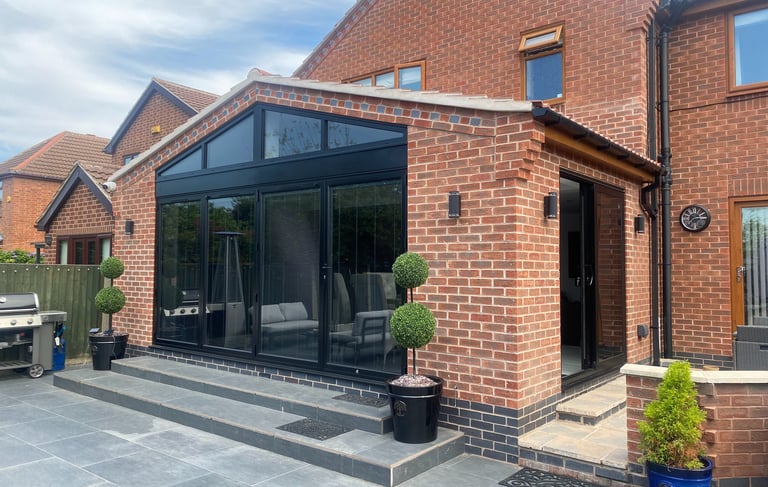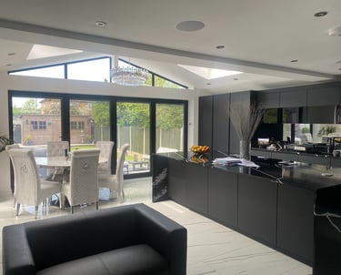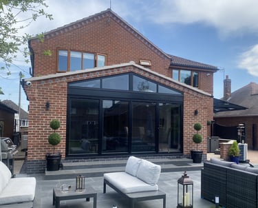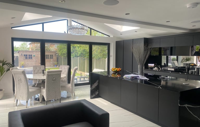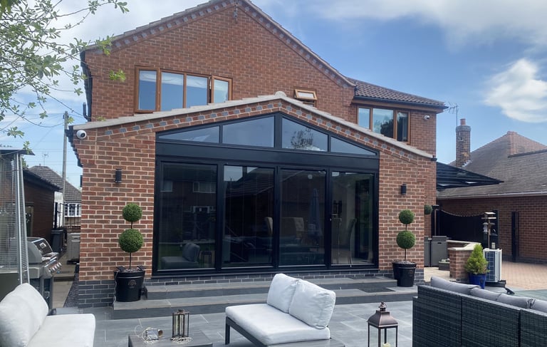 Single storey rear extension with vaulted ceilings and feature apex glazing in Long Eaton Nottingham